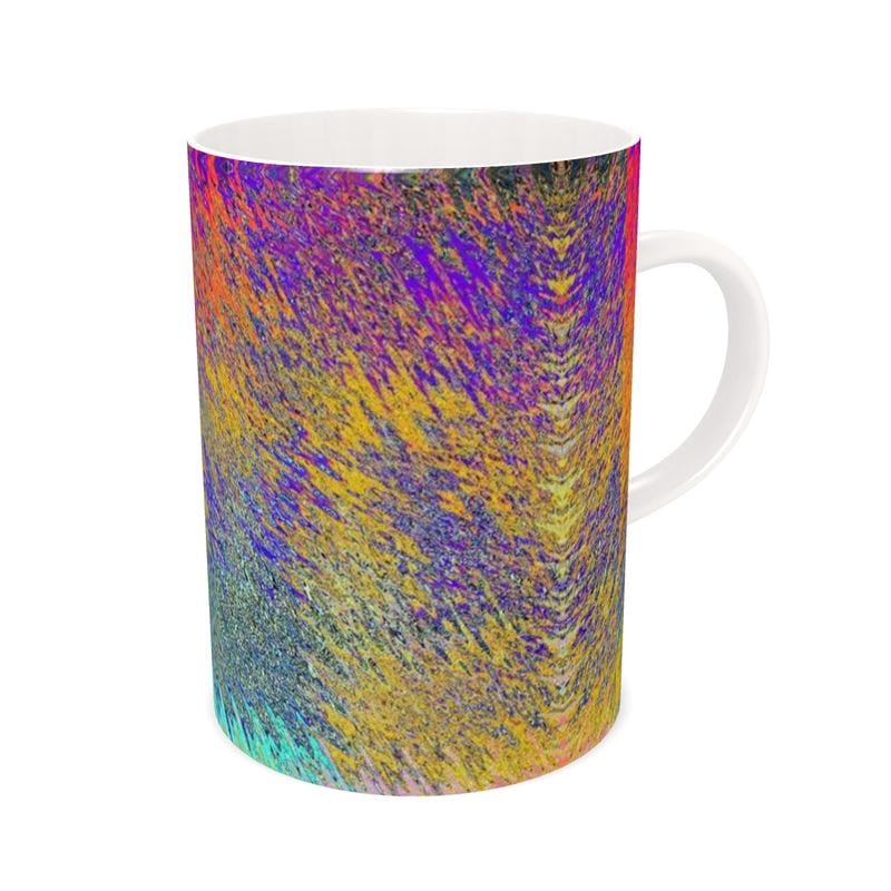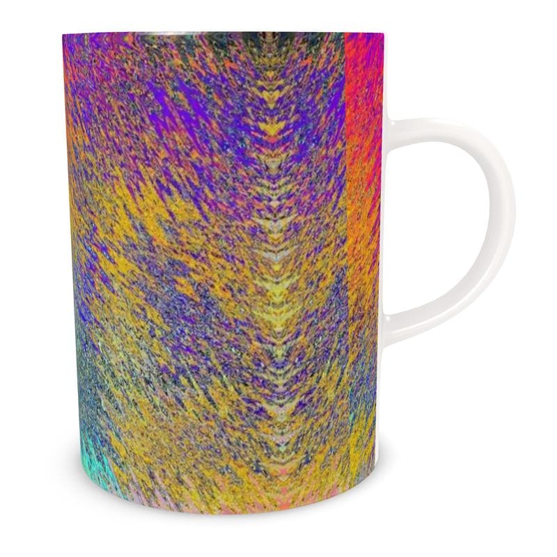 Sip your favorite tea or coffee in style with our bone china mug, designed with vibrant hues of red, orange, yellow, blue, turquoise, pink, and purple. Hand-printed to order, this fine bone china mug is thinner than porcelain yet stronger, offering a refined and lightweight feel in every sip. Its non-porous surface ensures a clean taste, making it the perfect everyday luxury for your kitchen or office.